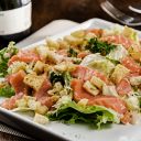 Salmão defumado, alface americana, queijo parmesão, croutons e molho caesar